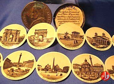 | Medaglia costituita da due lamine accoppiate con all'interno vedute di Roma. | ||||