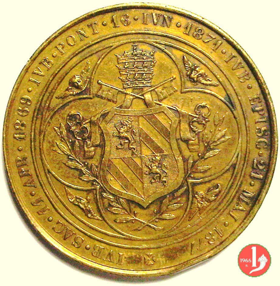 | Medaglia straordinaria coniata, emessa il 21-05-1877, in occasione del Giubileo episcopale di Pio IX. | |||||
