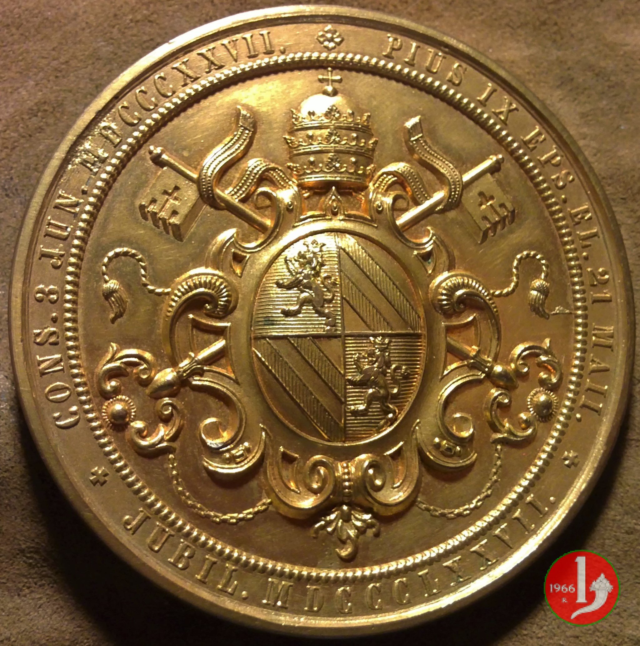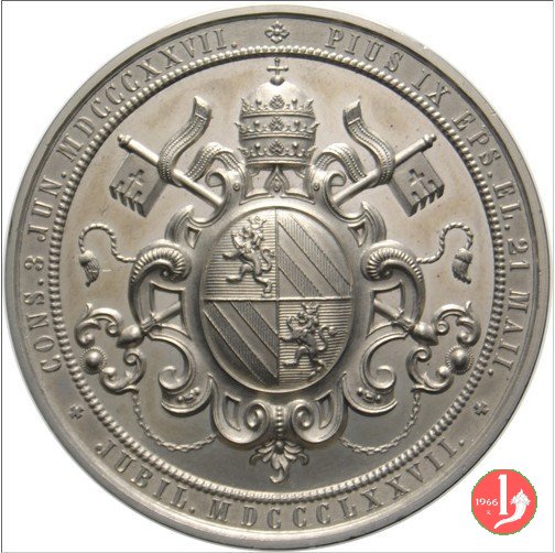 PIVS IX EPS • EL 21 MAII • CONS • 3 JVN • MDCCCXXVII • JVBIL • MDCCCLXXVII