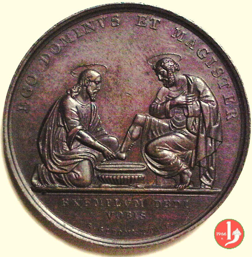 Medaglia annuale della lavanda emessa il 17-04-1851 Giovedí Santo. Oltre alla tiratura sottoriportata ufficiale, per gli aventi diritto, è probabile siano state emesse, su richiesta, altre medaglie. | ||||||||