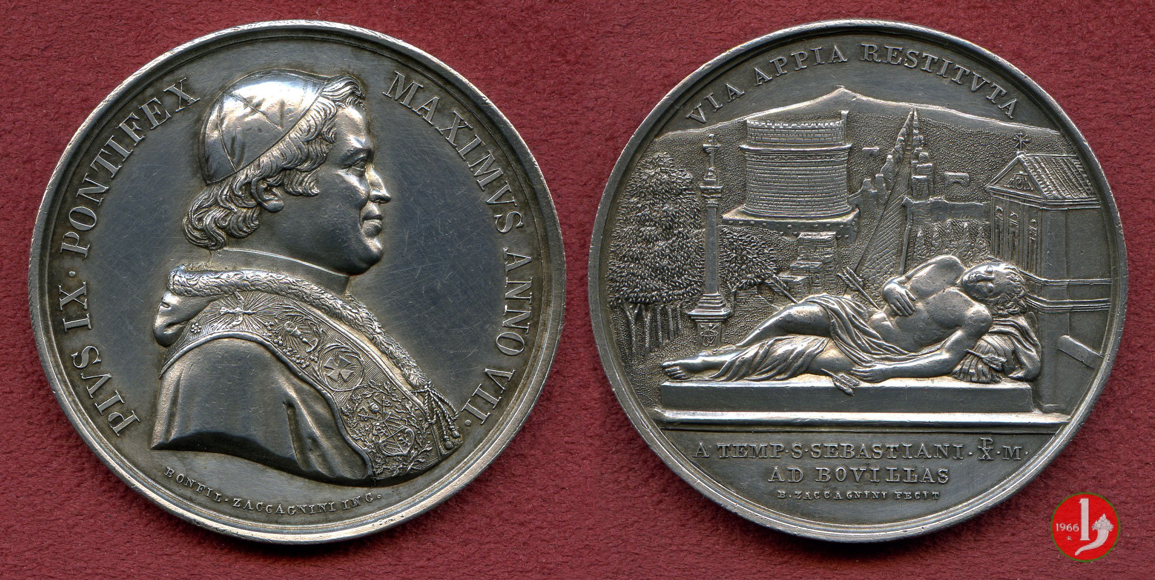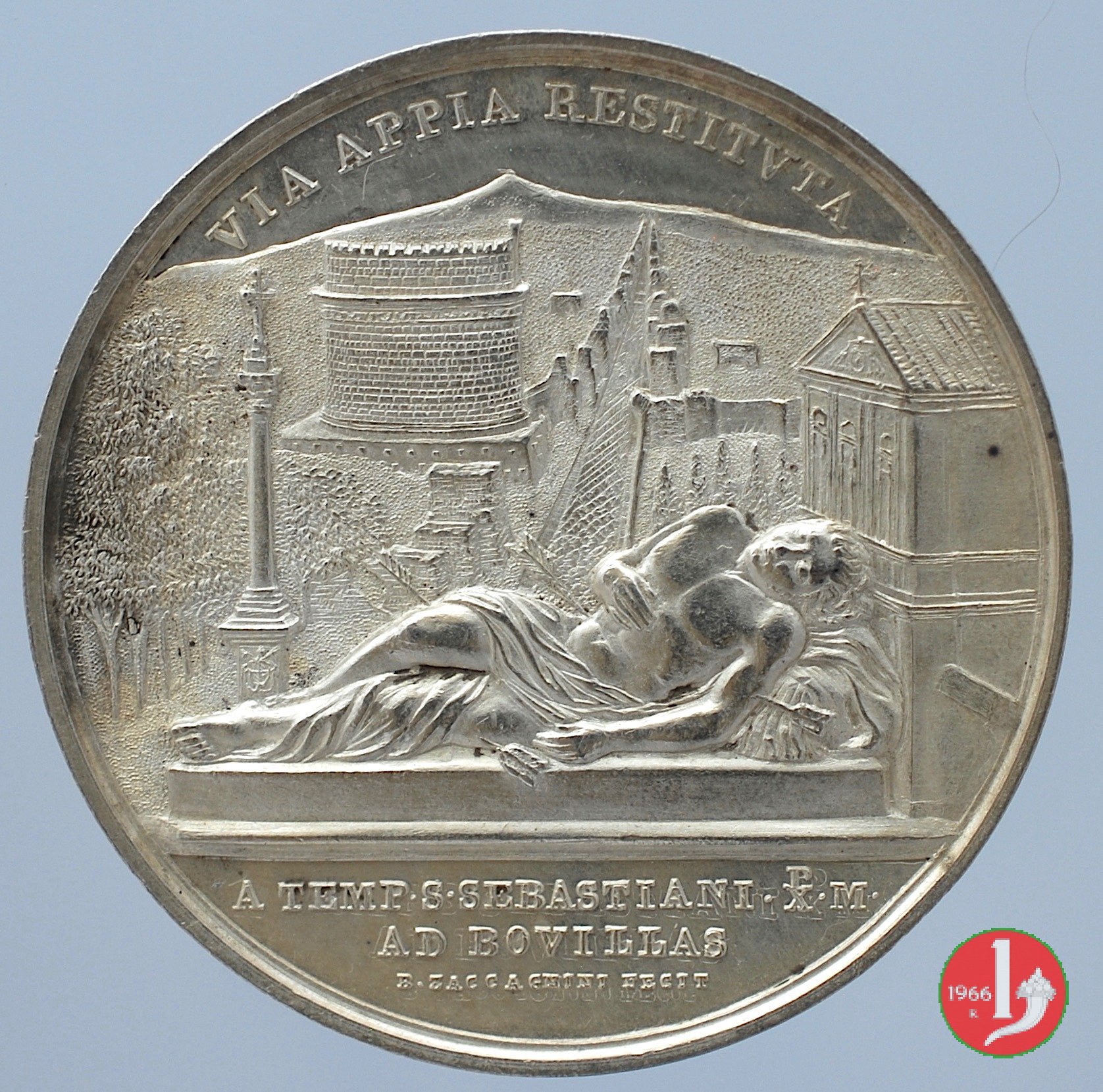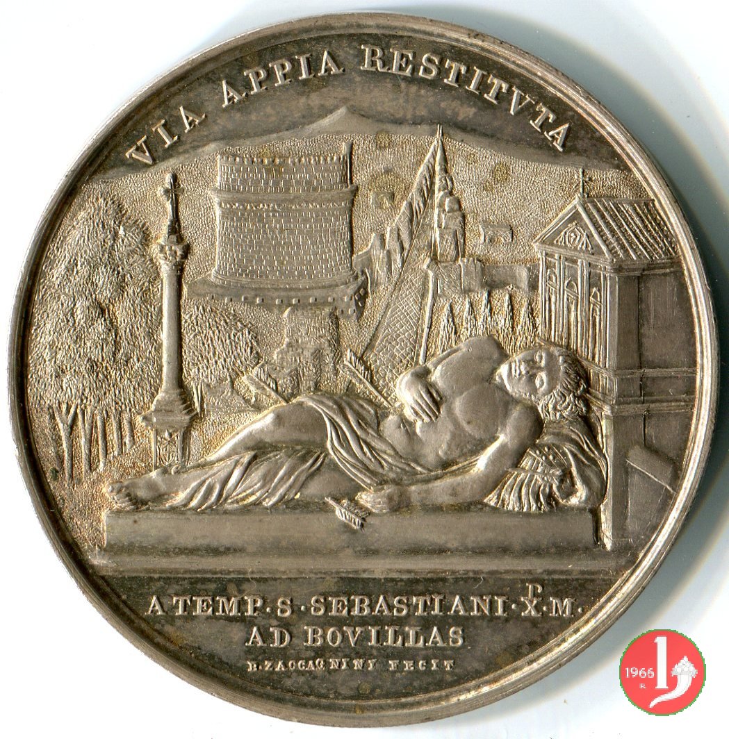 | Medaglia annuale emessa il 29-06-1852 in ricordo delle opere di restauro eseguite per i monumenti presenti sulla via Appia antica. | ||||||||