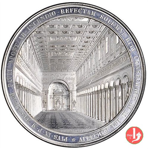 Medaglia straordinaria coniata, di Massimo Modulo unifacce, emessa il 10-12-1854 in occasione della Consacrazione della Basilica di San Paolo ricostruita.