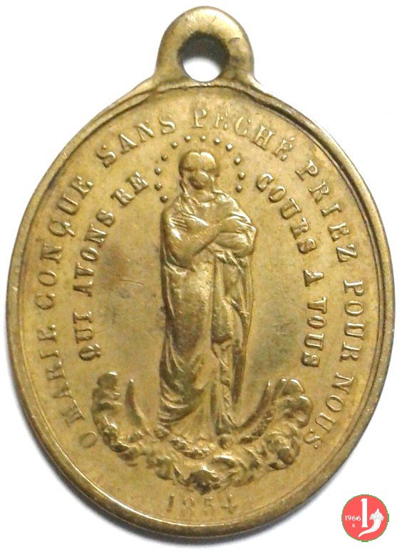 Medaglia ovale coniata, realizzata nel 1854, per ricordare il dogma dell'Immacolata Concezione di Maria.