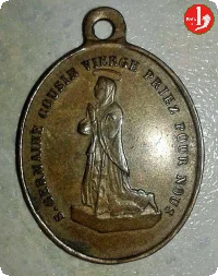la Santa velata e nimbata orante e genuflessa a sx su base