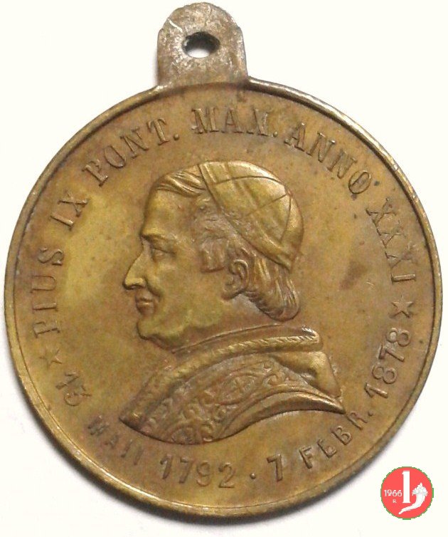 | Medaglia postuma coniata, realizzata nel 1878, a ricordo della celebrazioni del funerali di Pio IX. | |||||