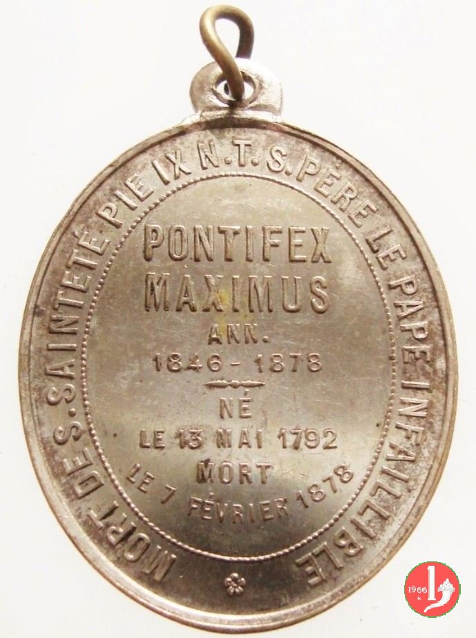 entro ovale perlinato: PONTIFEX = MAXIMUS = ANN. = 1846-1878 = - = NE = LE 13 MAI 1792 = MORT = LE VII FEVRIER 1878