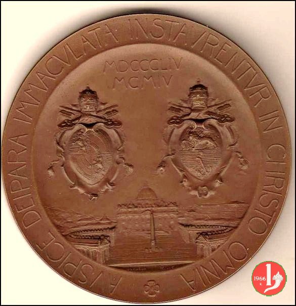 Medaglia coniata, emessa il 02-02-1904 a ricordo della promulgazione della lettera Enciclica Ad diem illum laetissimum, atta celebrare il cinquantesimo anniversario della definizione del dogma dell'immacolata concezione di Maria, la madre di Gesú.