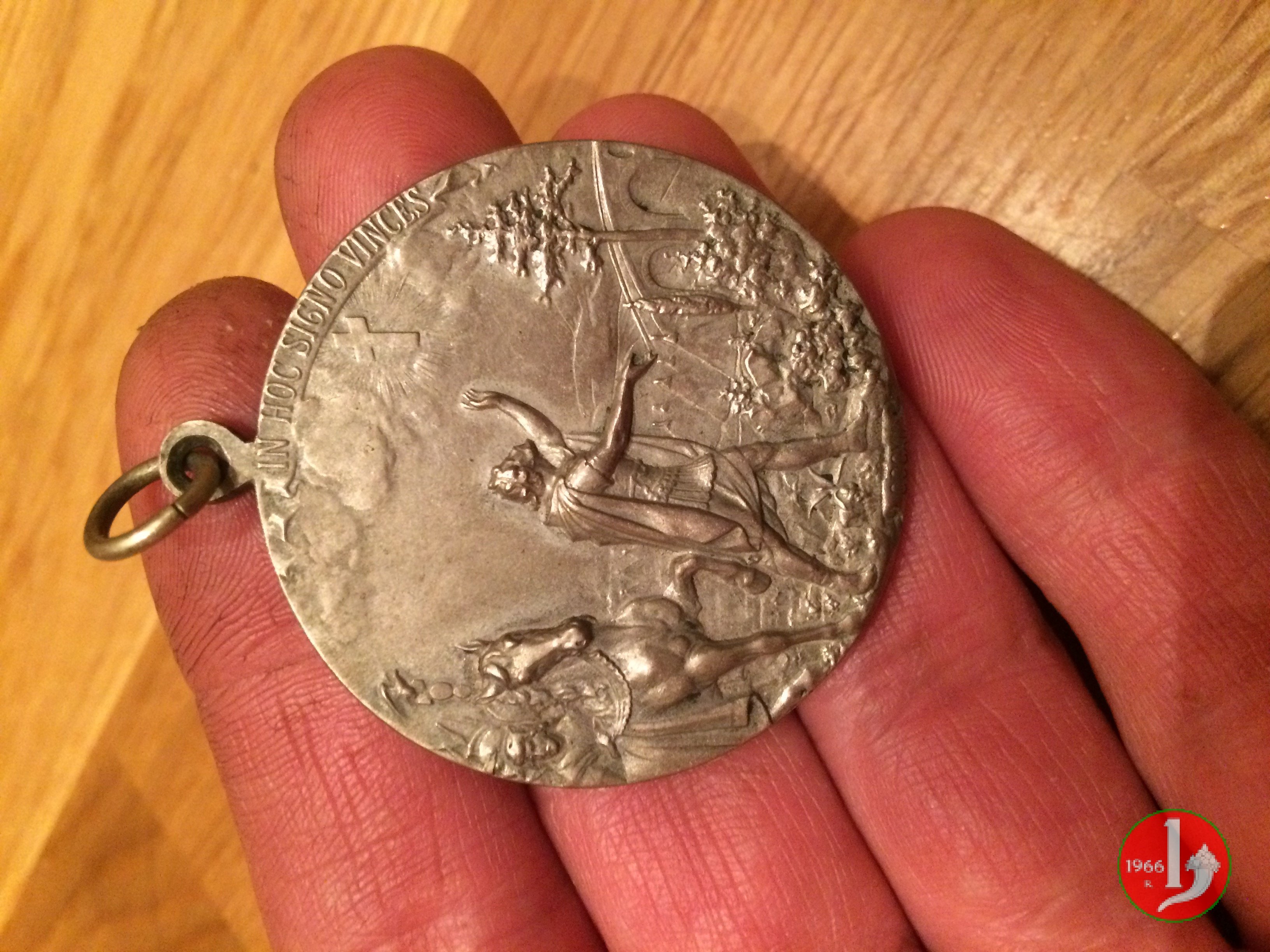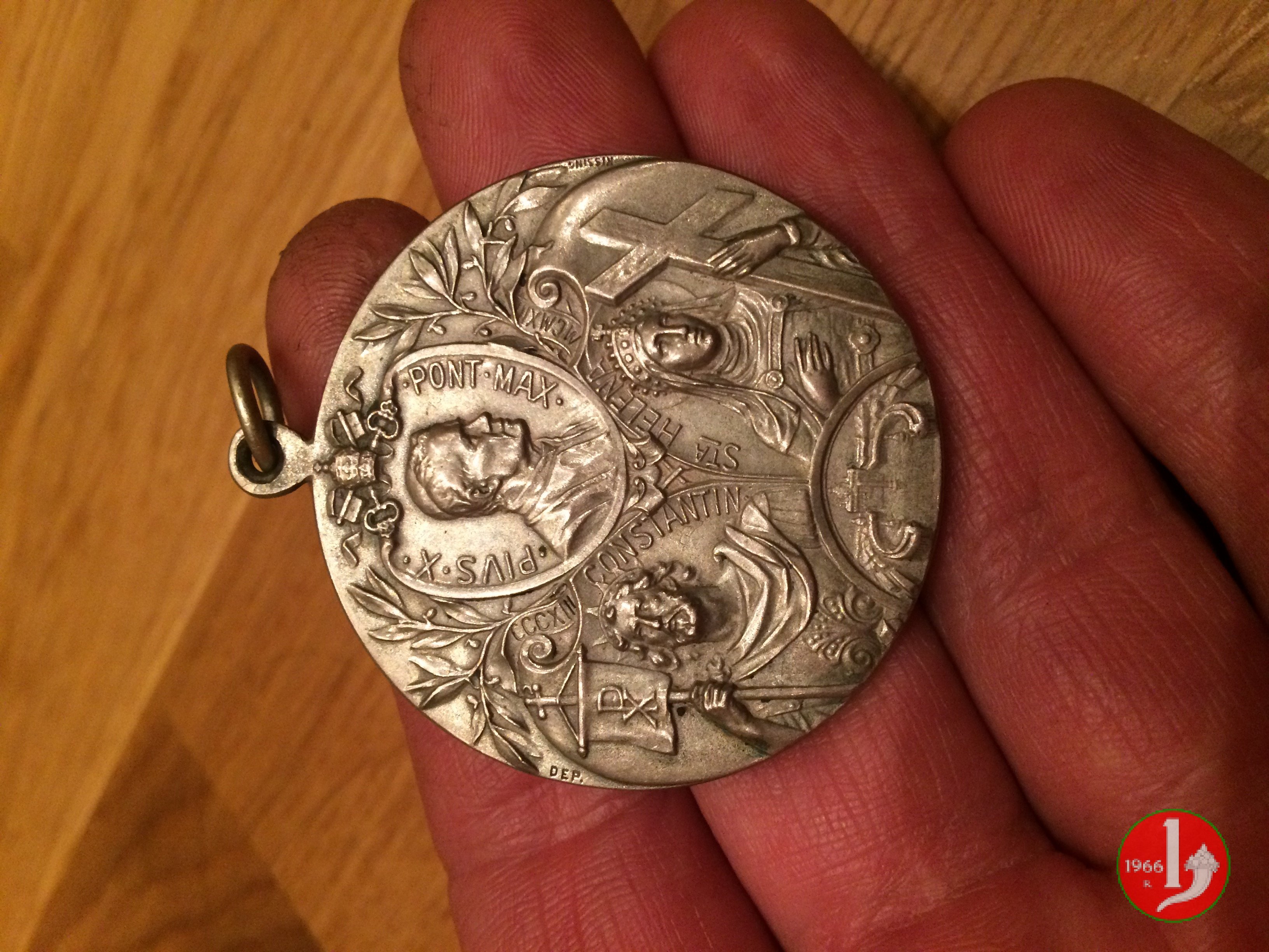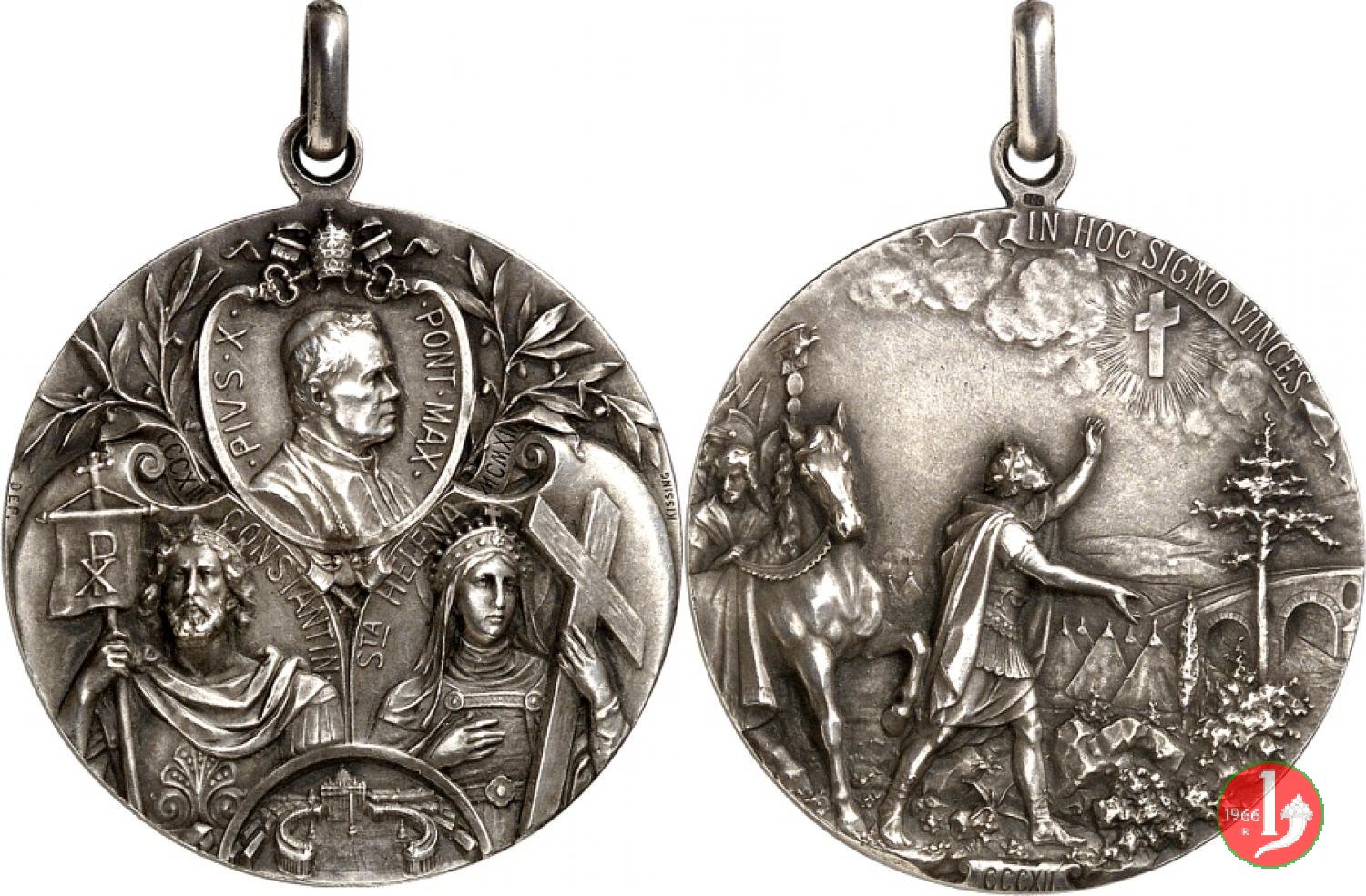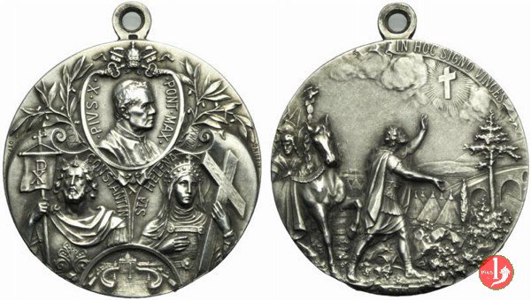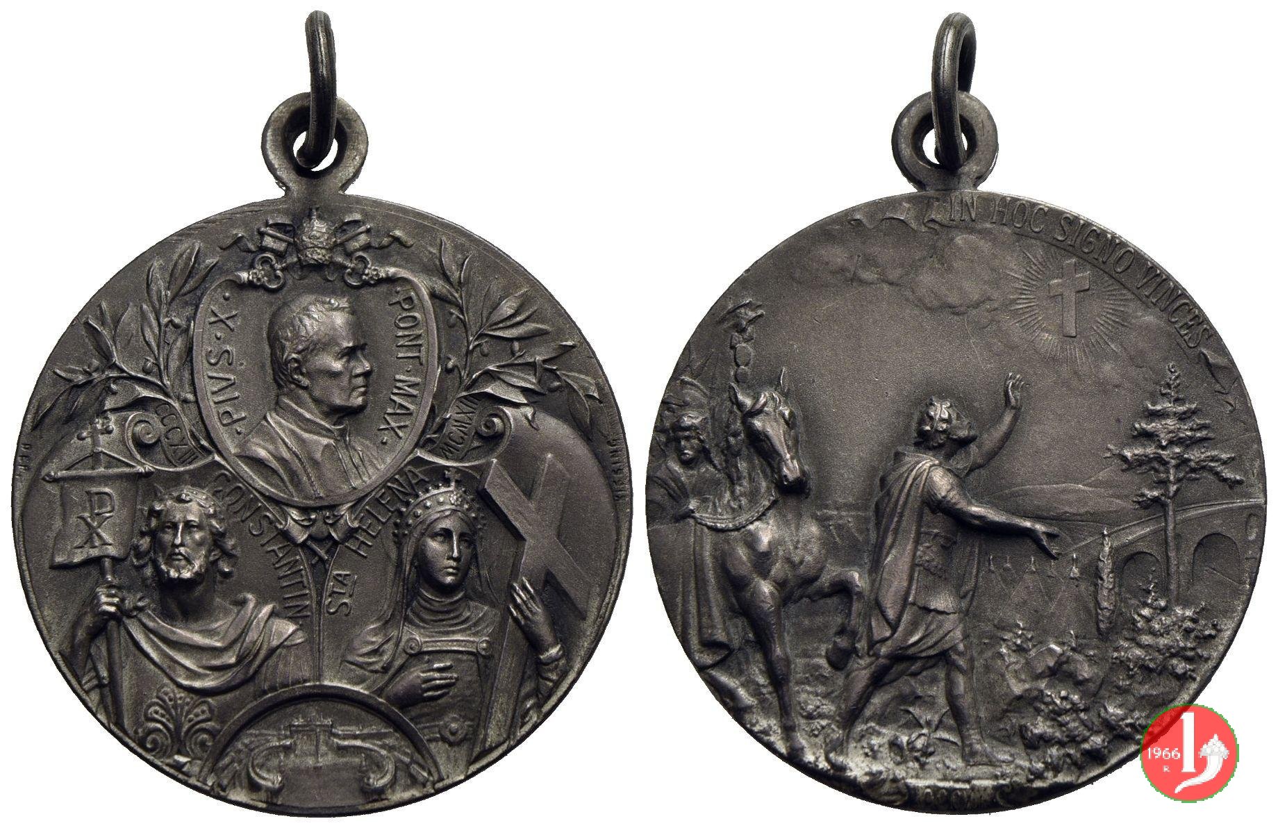 entro campo ricoperto da rami d'ulivo in tre cornici, al centro in scudetto:. PIVS • X • _ PONT • MAX • busto a dx; sotto a sx: CCCXII _ COSTANTIN busto dell'Imperatore di fronte con stendardo PX; sotto a dx: STA HELENA busto della Santa di fronte con croce