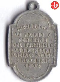 La madonna in piedi di fonte a braccia aperte tra due angeli, sotto pellegrini oranti