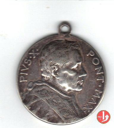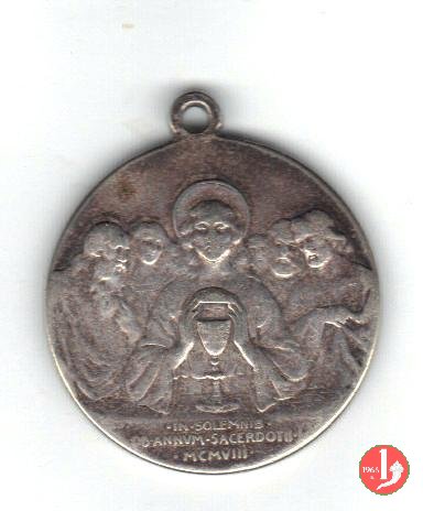 | Medaglia coniata, emessa il 18-09-1908, con fondo opaco, a ricordo del Giubileo sacerdotale di Pio X. | ||||||