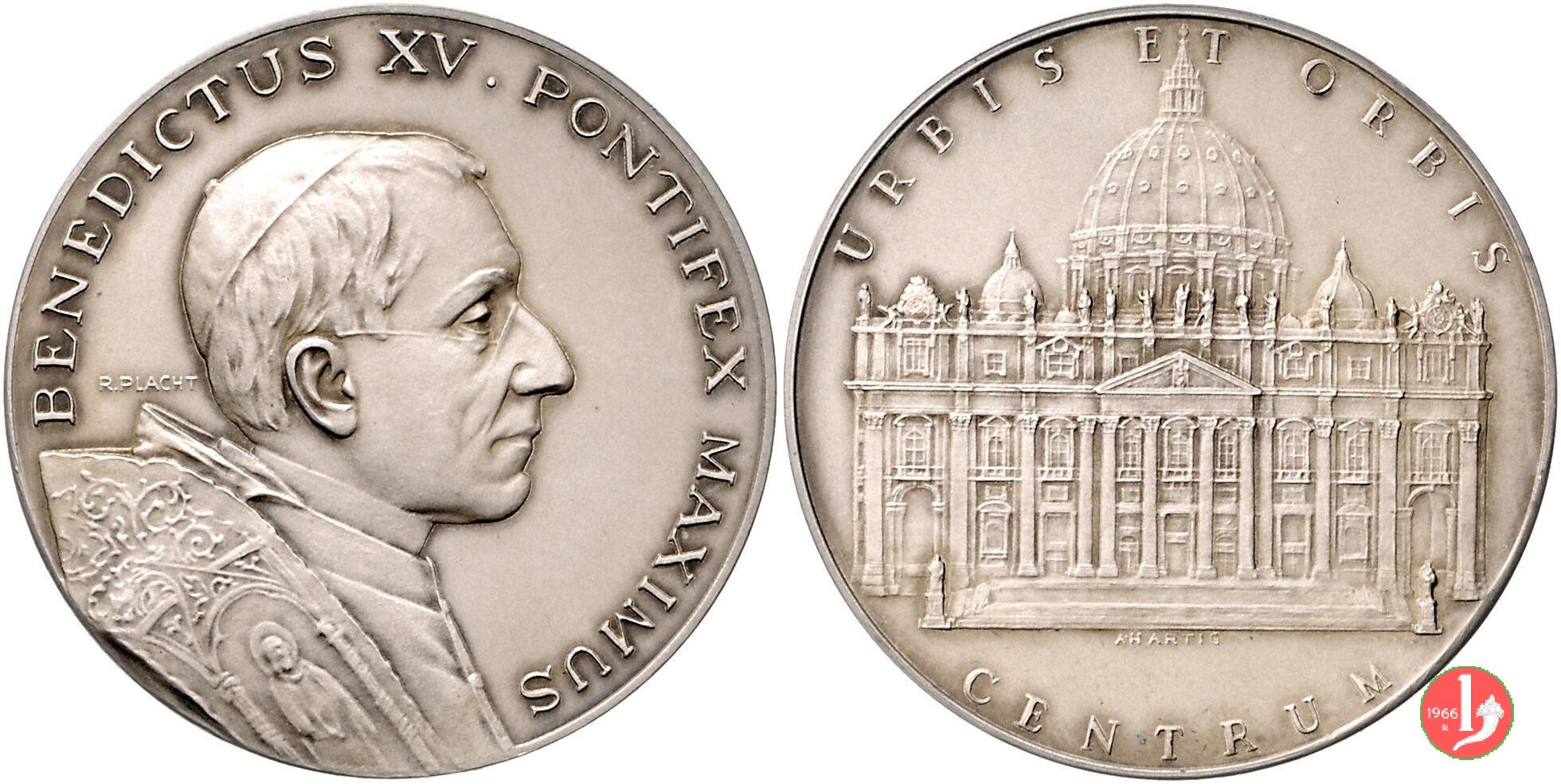 | Medaglia postuma coniata, realizzata nel 1950 circa, fa parte di una serie comprendente i Pontefici da Pio IX a Pio XII. | ||||