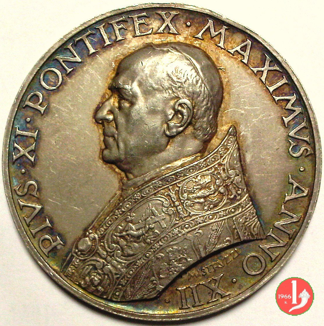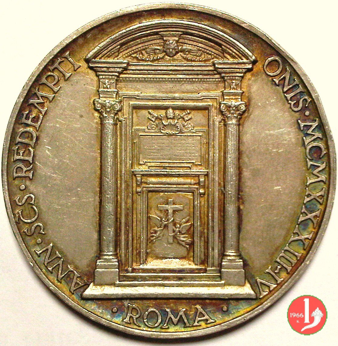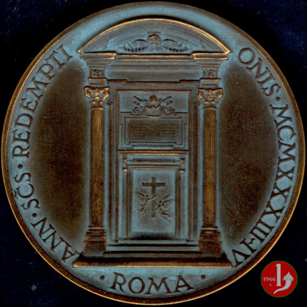 | Medaglia annuale coniata, emessa il 29-06-1933, con fondo opaco dalla Regia Zecca Italiana, a ricordo dell'Anno Santo della redenzione. | ||||||||