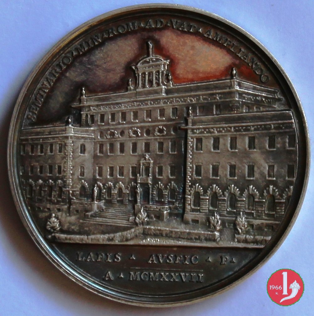 | Medaglia annuale coniata, emessa il 29-06-1927, con fondo lucido dalla Regia Zecca Italiana, a ricordo dell'ampliamento del Seminario Romano Minore. | ||||||||