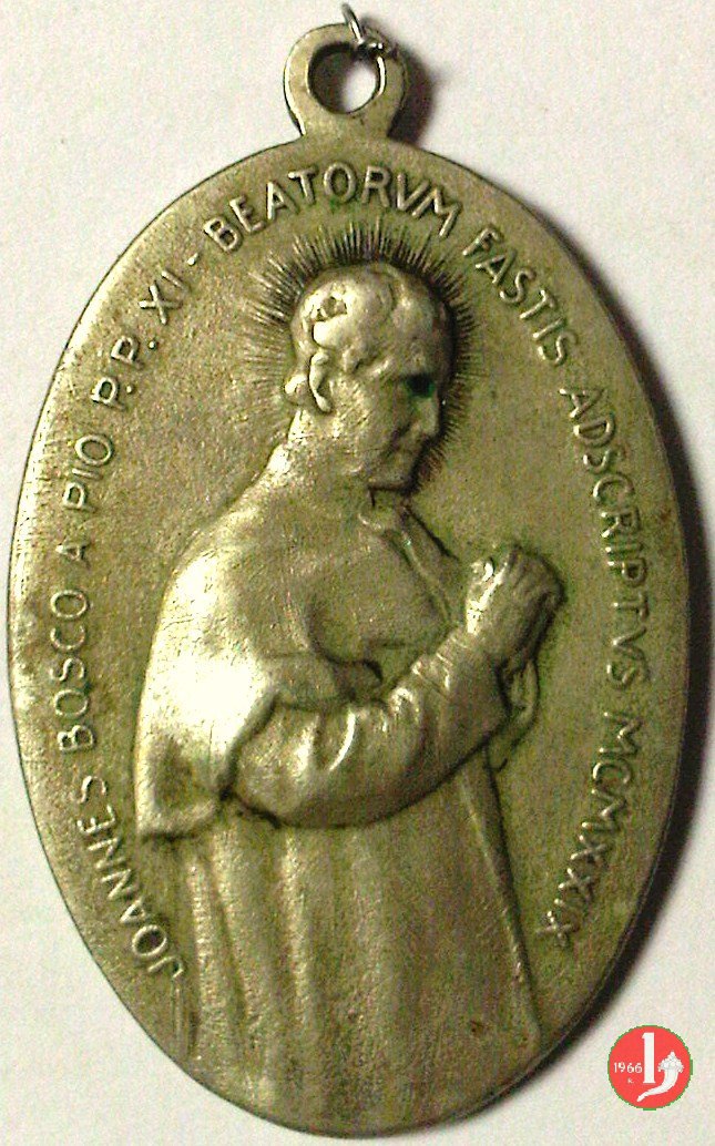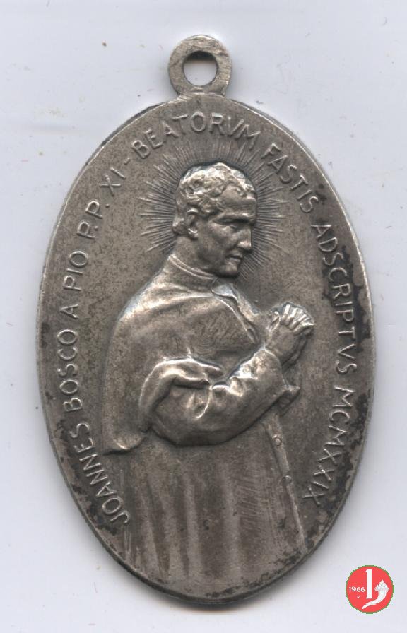 Medaglia straordinaria coniata, emessa il 02-06-1929, con fondo opaco dallo Stabilimento Stefano Johnson di Milano su commissione della Società Editrice Internazionale di Torino, per ricordare la Beatificazione di Giovanni Bosco.