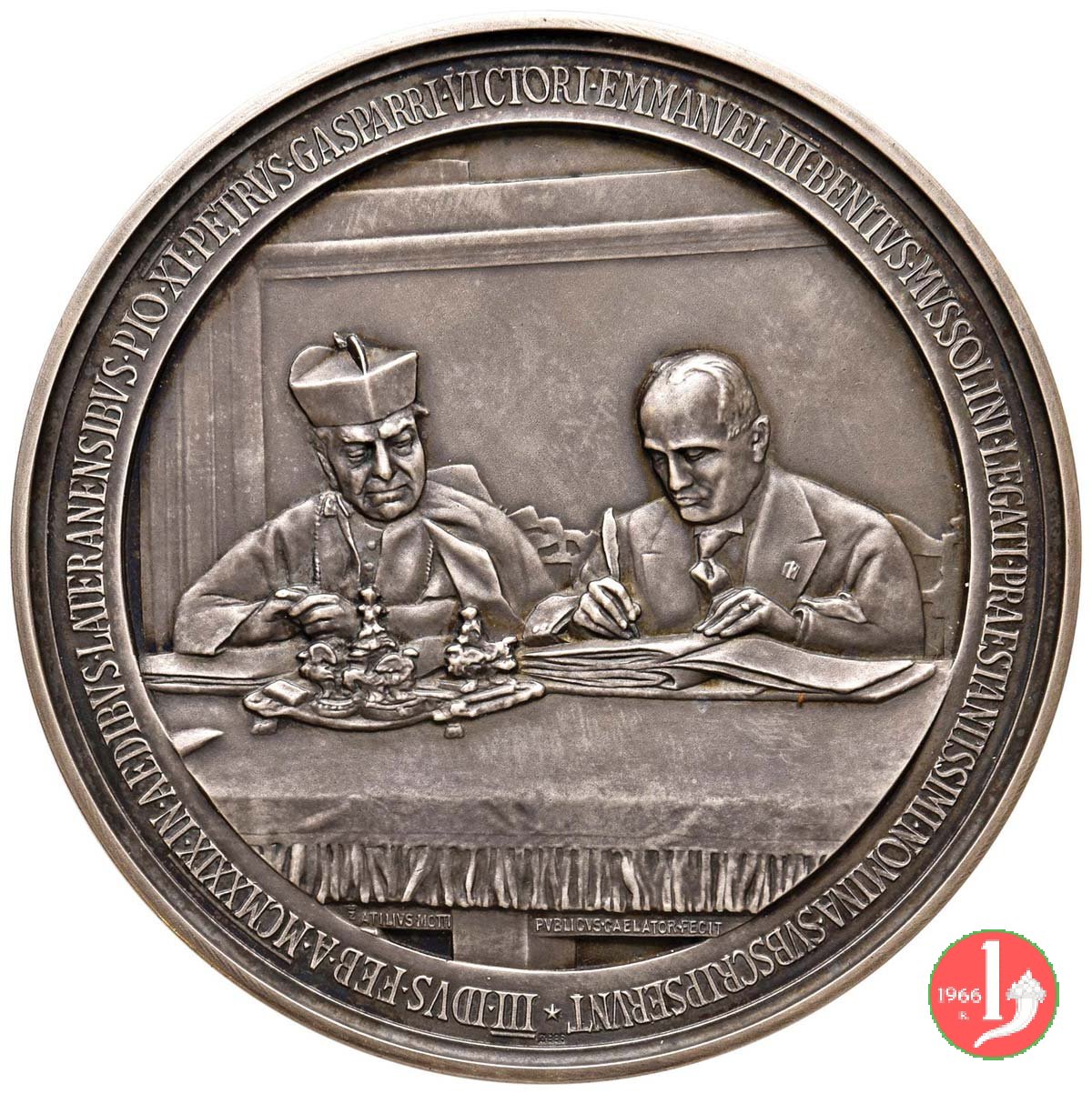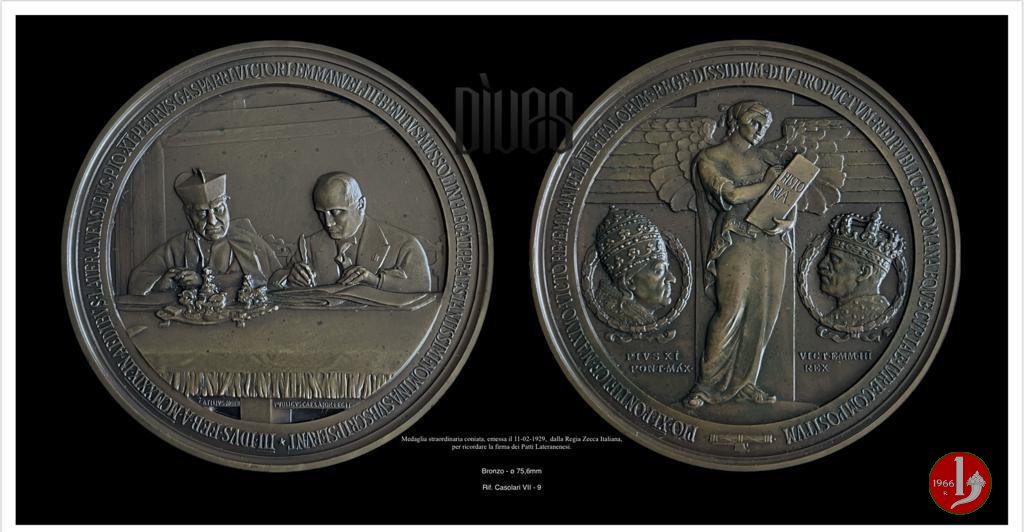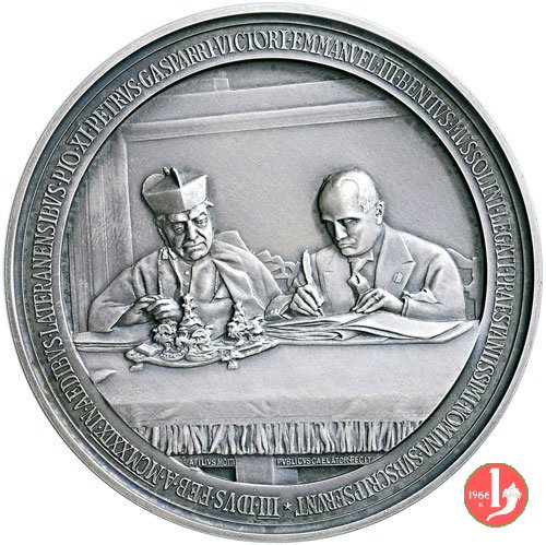 Medaglia straordinaria coniata, emessa il 11-02-1929, con fondo opaco dalla Regia Zecca Italiana, per ricordare la firma dei Patti Lateranenesi.