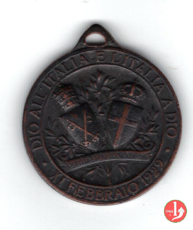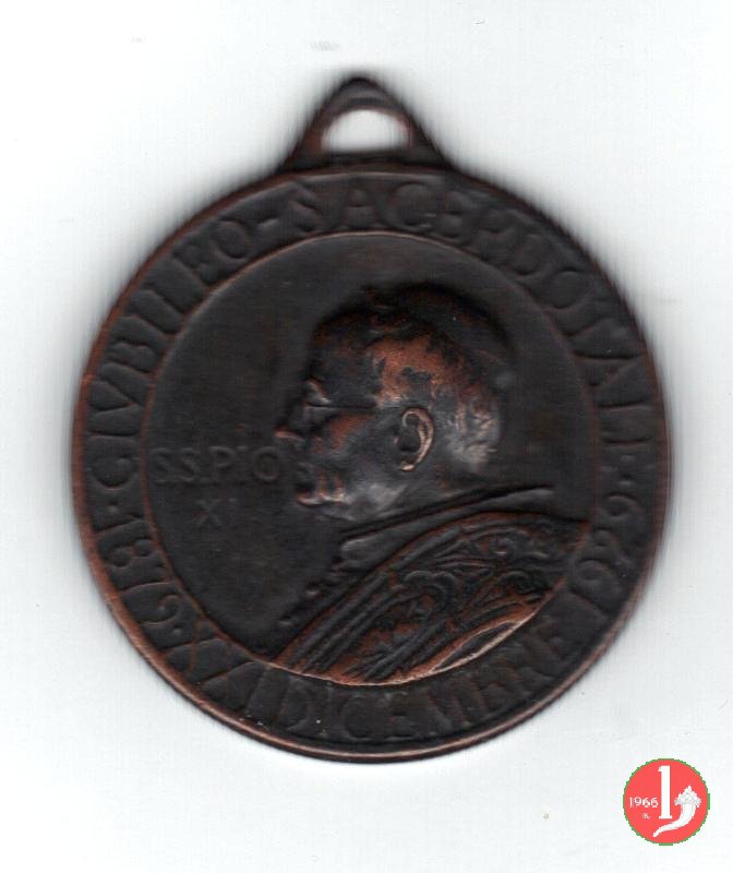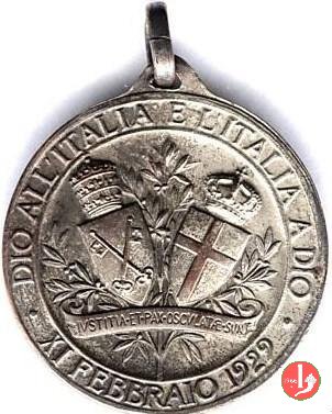 Medaglia straordinaria coniata, emessa il 21-12-1929, con fondo opaco, per ricordare il Concordato tra l'Italia e la Città del Vaticano e il Giubileo Sacerdotale do Pio XI.