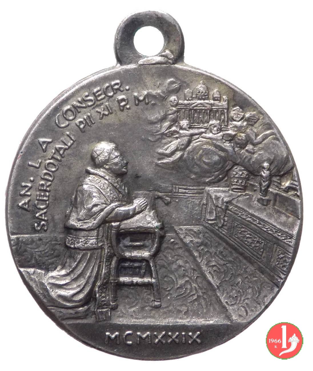 | Medaglia straordinaria coniata, emessa 20-12-1929, con fondo opaco, a ricordo del 50° Anniversario dell'Ordinazione Sacerdotale di Pio XI. | |||||