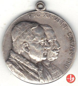 busti affiancati verso dx del Re in uniforme e del Papa con mozzetta d'ermellino
