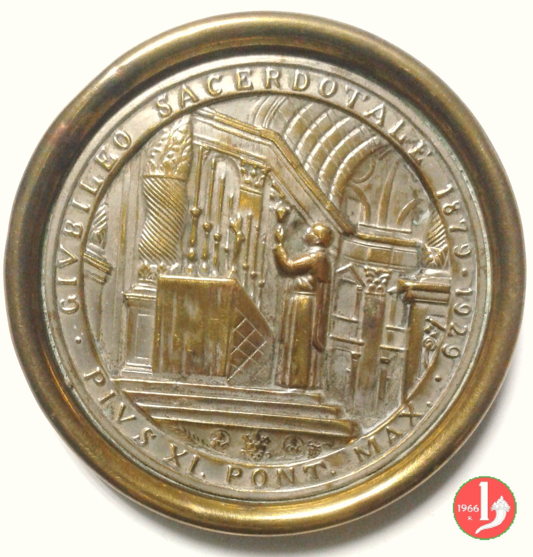 | Medaglia uniface coniata, realizzata nel 1929 per ricordare il Giubileo Sacerdotale di Pio XI. | |||