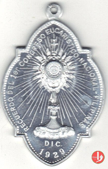 | Medaglia lobata e cuspidata coniata, realizzata nel dicembre 1929 a ricordo del Giubileo Sacerdotale di Pio XI e del Primo Congresso Eucaristico Filippino. | |||