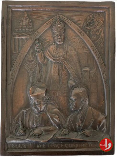 Grande placca rettangolare fusa, realizzata nel 1929 a ricordo del Concordato tra la Santa Sede e l'Italia.