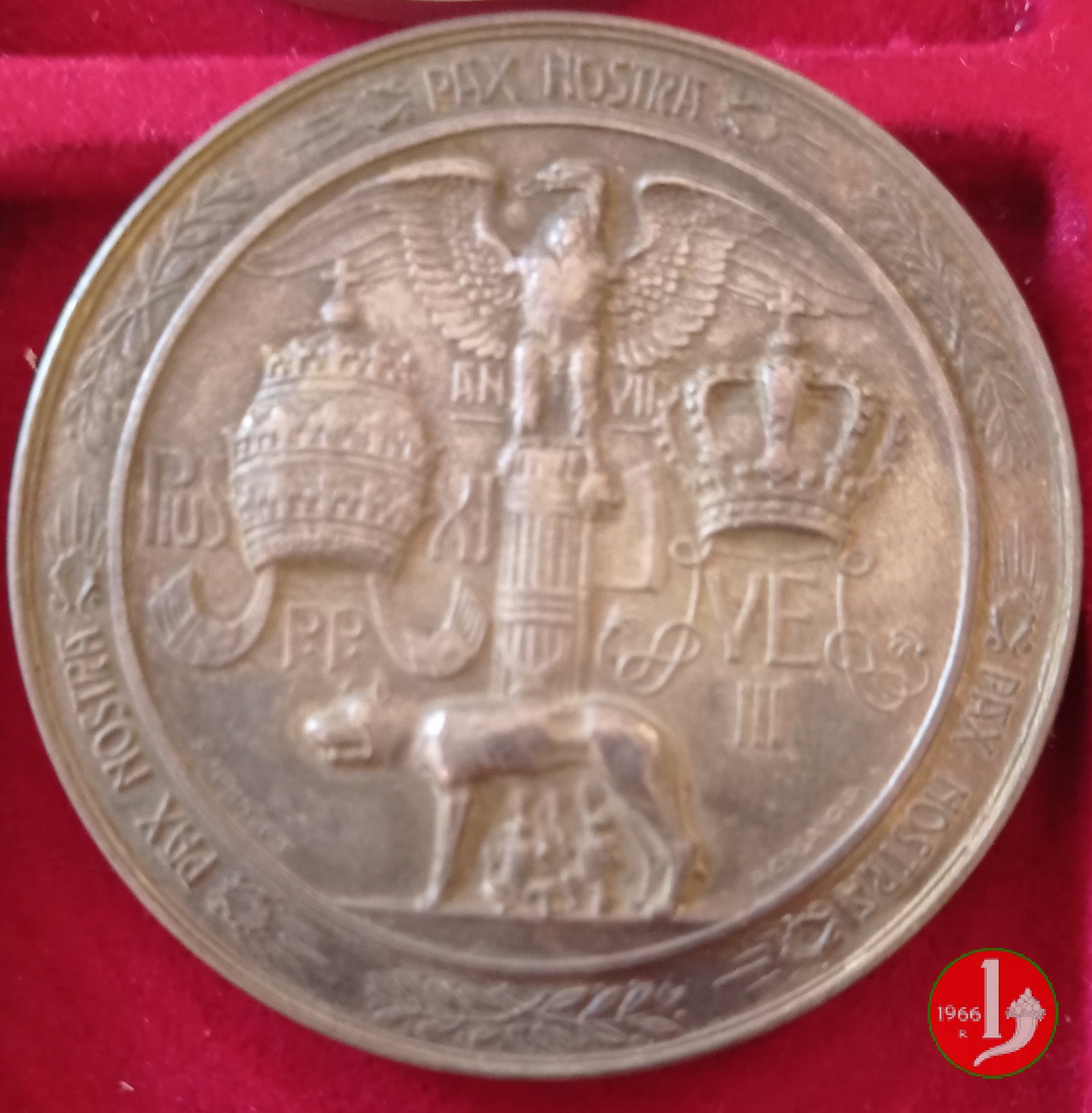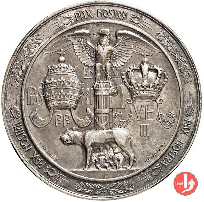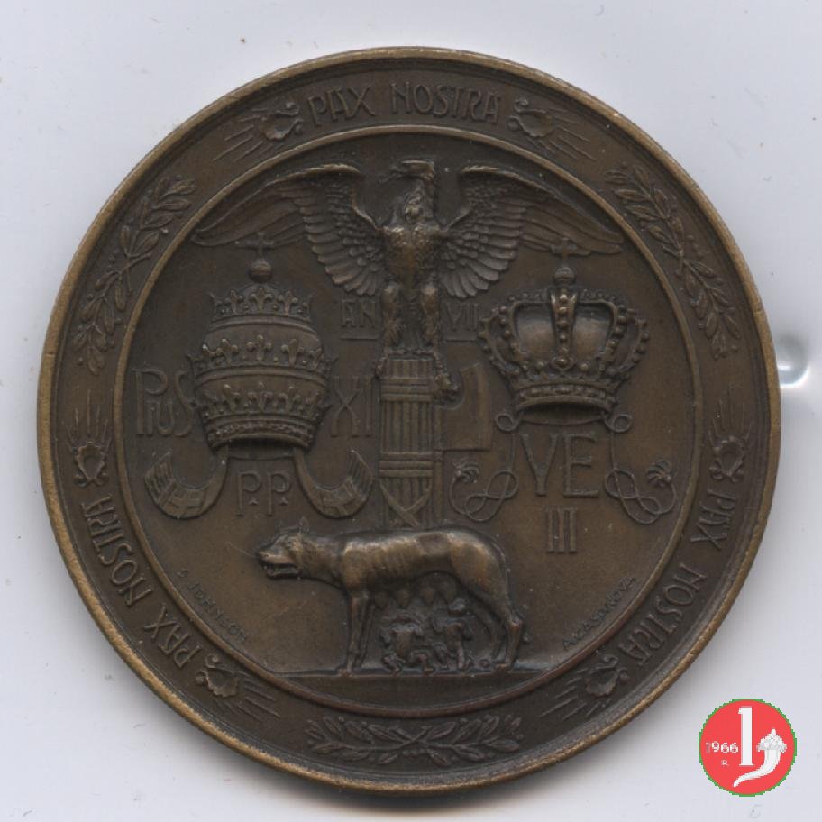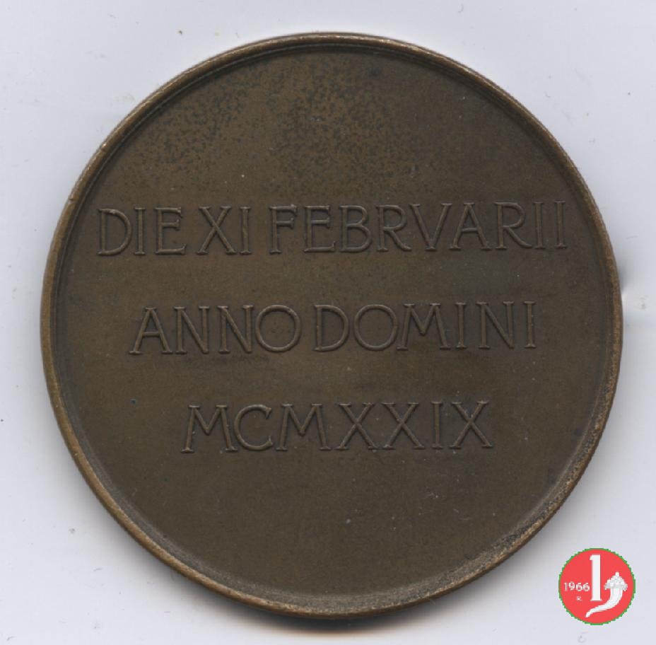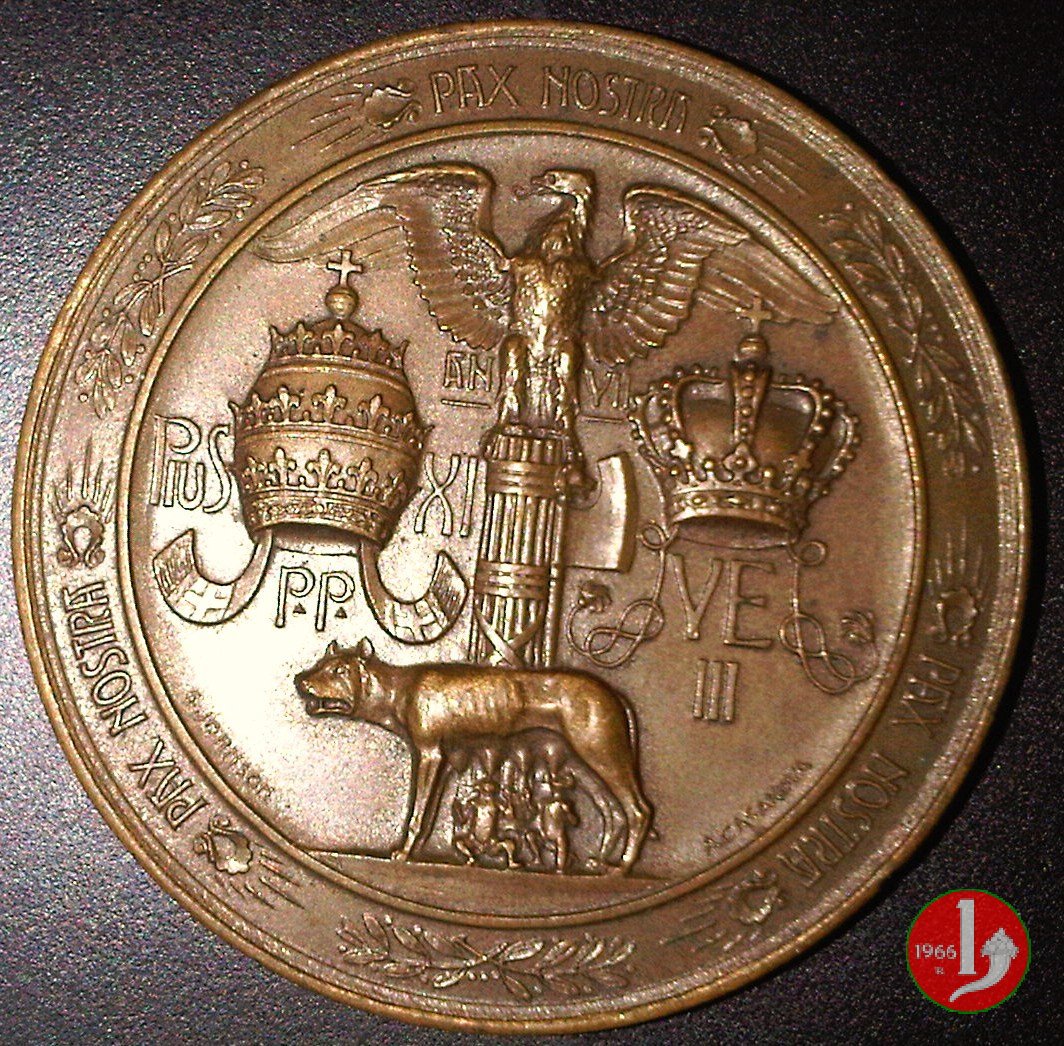 Medaglia straordinaria coniata, emessa il 11-02-1929, con fondo lucido dallo Stabilimento Stefano Johnson di Milano, a ricordo della firma dei Patti Lateranensi tra Italia e Santa Sede.