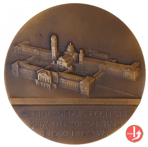 | Medaglia straordinaria coniata, emessa il 20-12-1929, con fondo opaco, per ricordare la costruzione della Sede del Seminario Arcivescovile di Milano a Venegono Inferiore. | ||||||