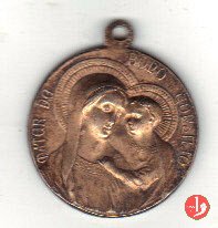 | Medaglia devozionale coniata, emessa confondo opaco dallo Stabilimento Stefano Johnson di Milano. Incisore: Enrico Farè. | ||||