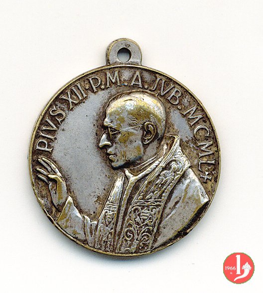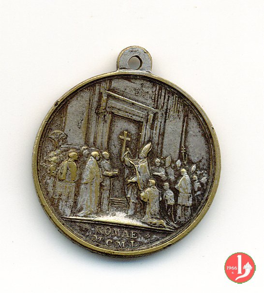 Medaglia straordinaria coniata, emessa nel 1950, con fondo opaco dallo Stabilimento F. M. Lorioli di Milano, per ricordare l'Anno Santo.