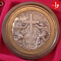 Medaglia coniata contenuta in ghiera metallica, realizzata nel 1950 per celebrare l'Anno Santo.