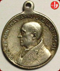 Medaglia straordinaria coniata, emessa nel 1950, con fondo opaco dallo Stabilimento Emilio Pagani di Milano, a ricordo dell'Anno Santo. | ||||