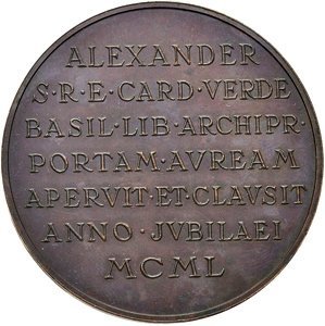 ALEXANDER = S • R • E • CARD • VERDE = BASIL • LIB • ARCHIPR • = PORTAM • AVREAM = APERVIT • ET • CLAVSIT = ANNO • JVBILAEI = MCML