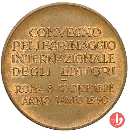 Medaglia straordinaria coniata, emessa il 08-12-1950 per ricordare il Pellegrinaggio Internazionale degli Editori a Roma.