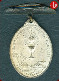 | Medaglia ovale coniata, realizzata nel 1956 a ricordo del 2° Congresso Eucaristico Nazionale Filippino, svoltosi a Manila dal 28 novembre al 2 dicembre. | |||
