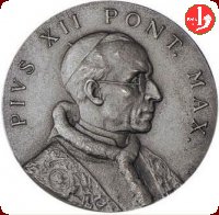 Medaglia premio annuale coniata, emessa il 06-07-1941, realizzata con fondo opaco dallo Stabilimenti Stefano Johnson di Milano, per il Corpo Armato Pontificio della Guardia Palatina d'Onore, distribuita per la festa annuale del corpo. | |||||||
