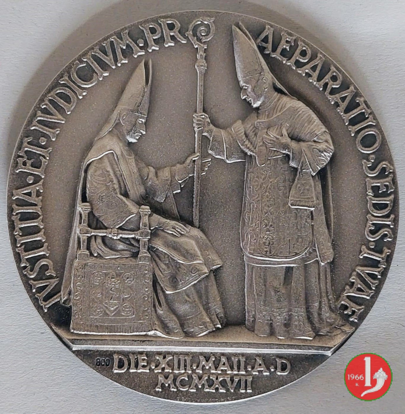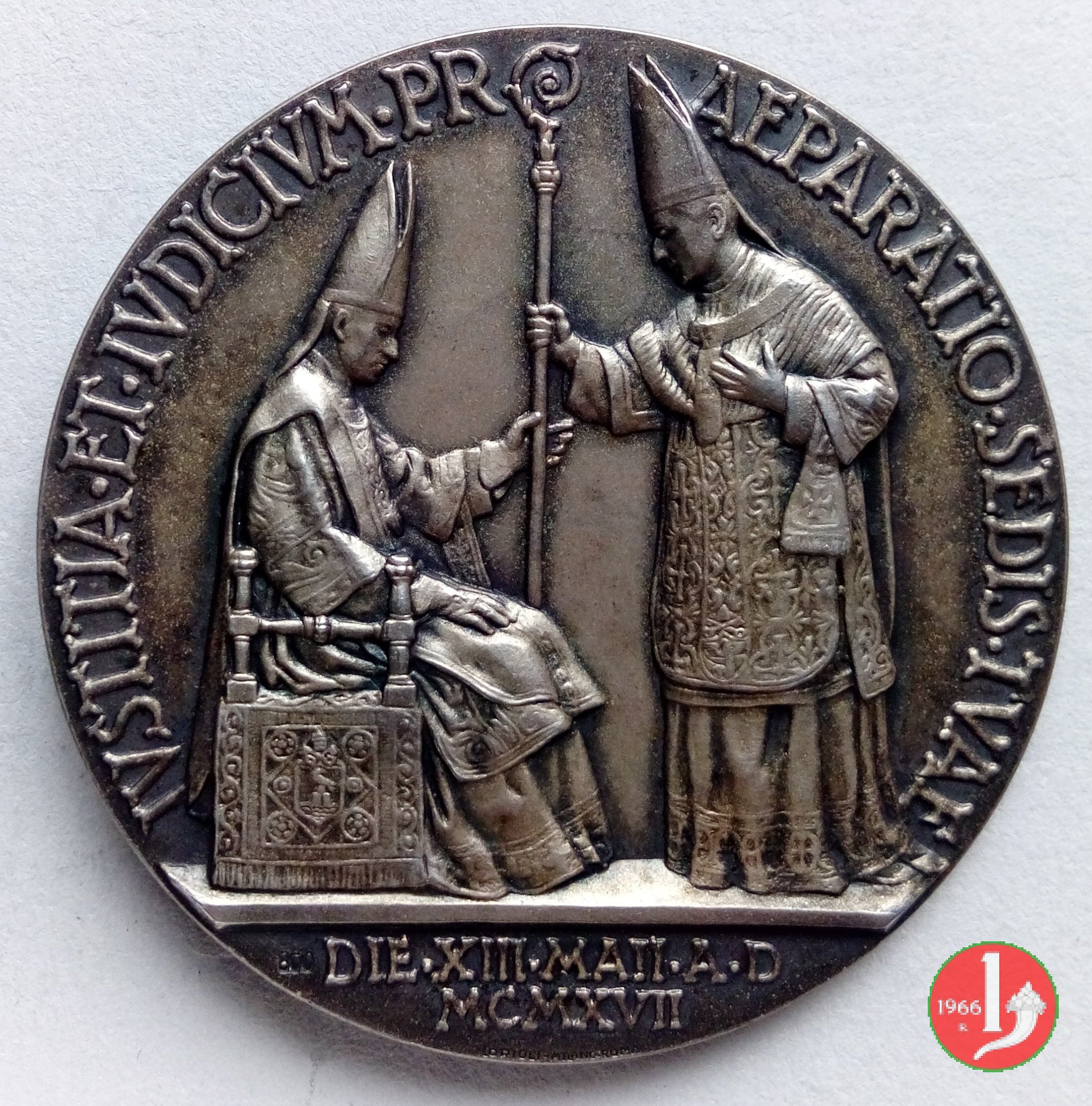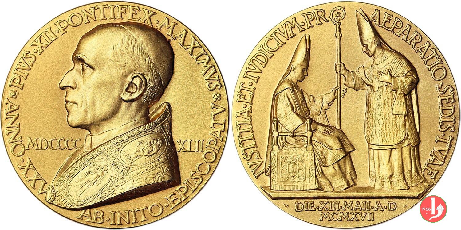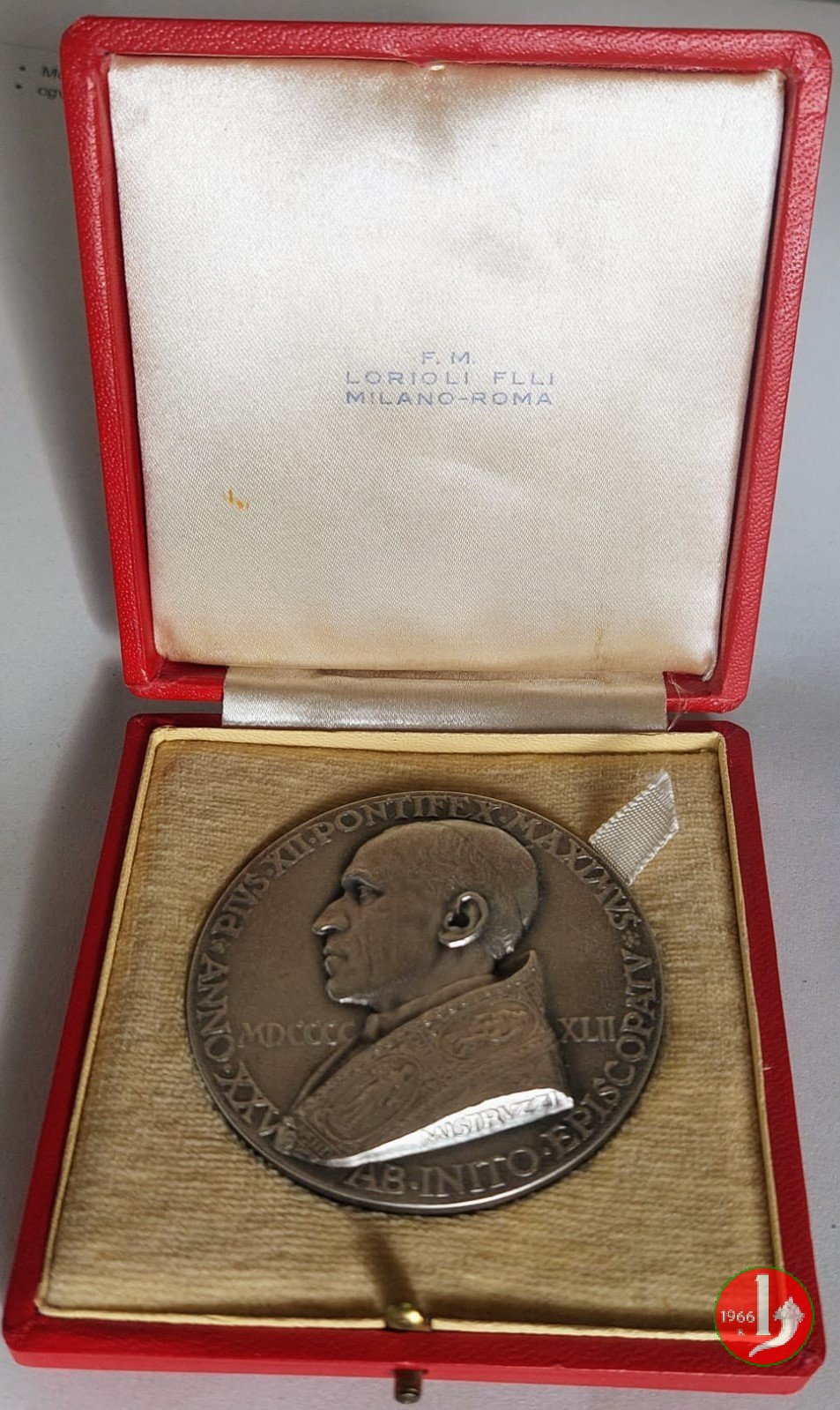 Medaglia straordinaria coniata, emessa il 13-05-1942, con fondo opaco dallo Stabilimento F. M. Lorioli F.lli di Milano, a ricordo del Giubileo Episcopale del Papa.