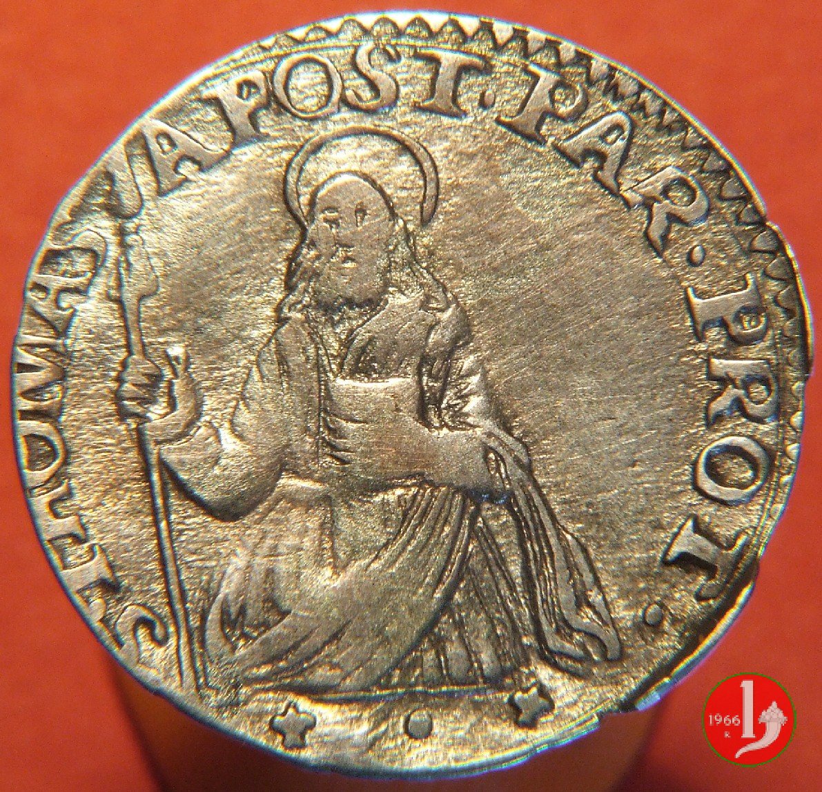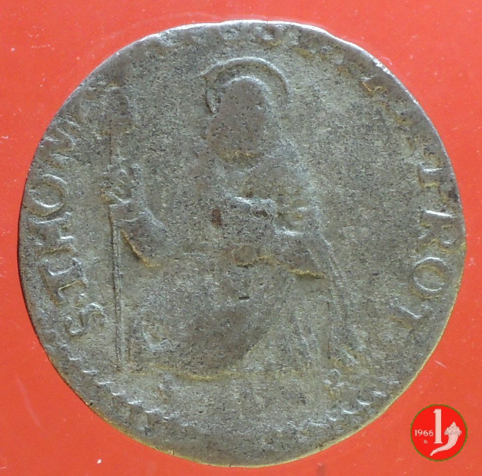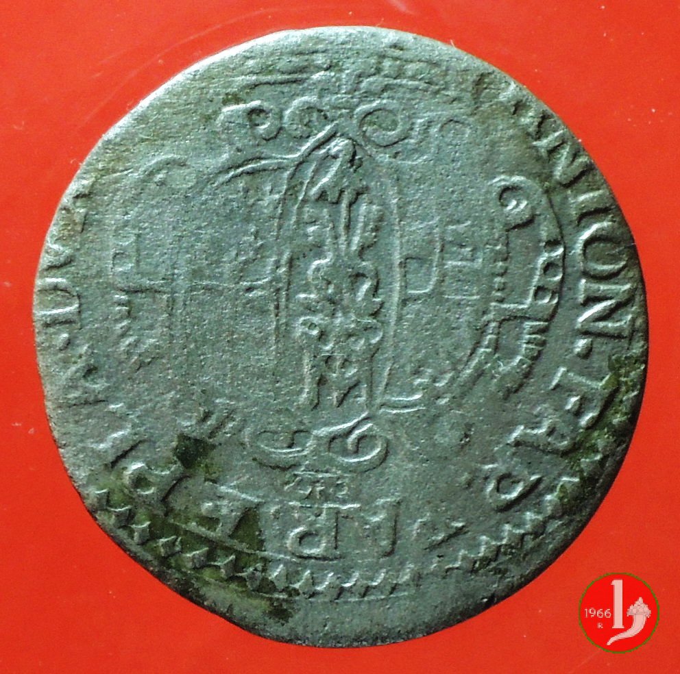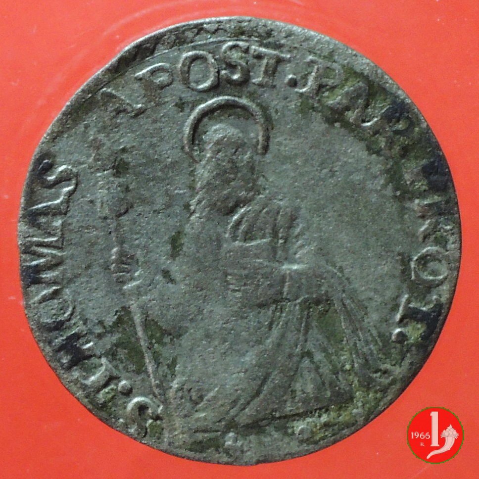 Stemma ducale sormontato da corona, intorno ANTON • FAR • PAR • & PLA • DVX VIII. San Tommaso con lancia e libro, intorno S • THOMAS • APOST • PAR • PROT •. In esergo (giglio) • (giglio).