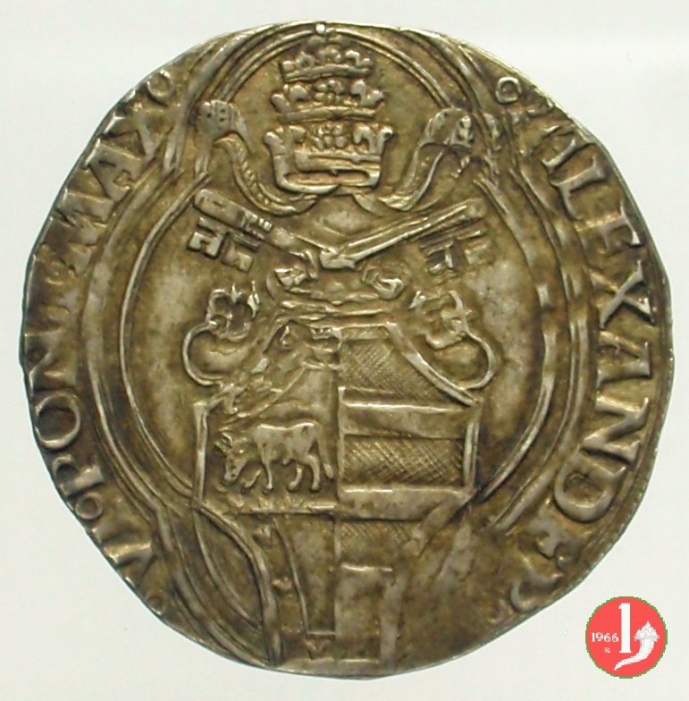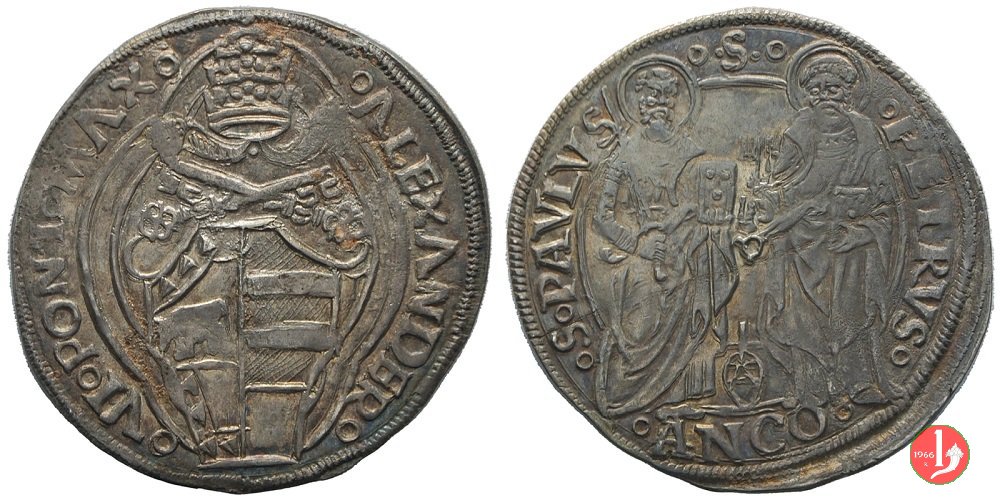 14 D/°ALEXANDER°__°VI°PONT°MAX° (le due N sono rovesciate) R/(da basso a sin.) °S°PAVLVS°_°.S.°_°PETRVS° / in esergo °ANCO°