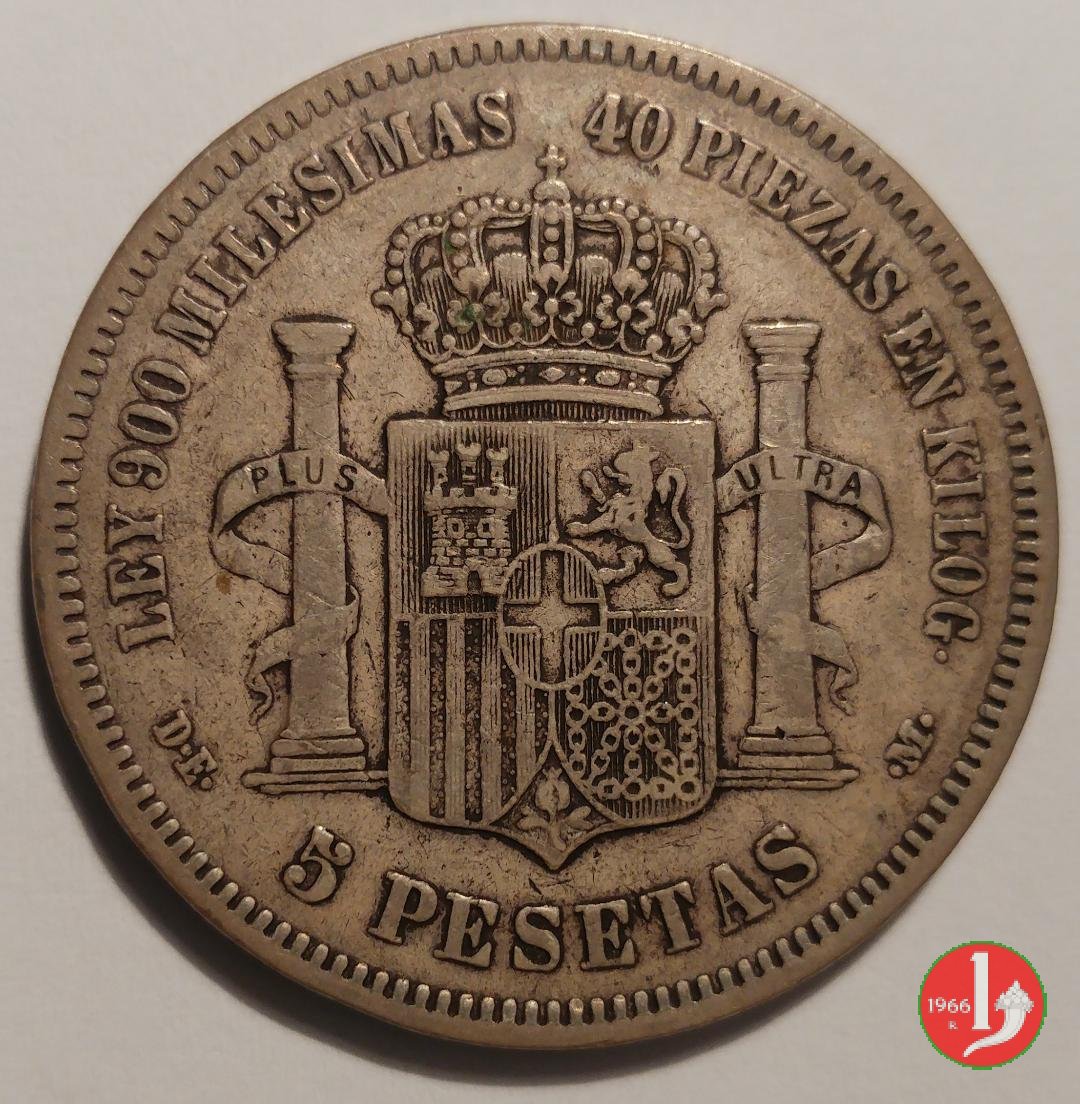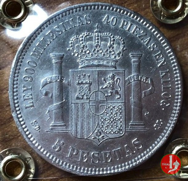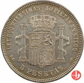 | Donato Álvarez Santullano (S), Eduardo Díaz Pimienta (D) e Julio de Escosura Tablares (E) erano gli ufficiali di zecca responsabili della lega mentre Ángel Mendoza Ordoñez (M) era il responsabile del peso. | ||||||||