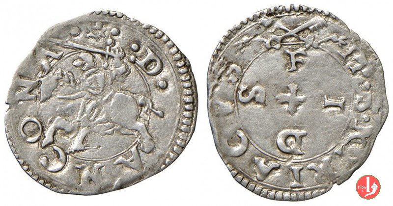 *DEANCONA /Cavaliere galoppante a sinistra con la spada brandita S^ Chiavi Decussate KIRIACVS^PPS^ /nel campo le lettere FIDS disposte attorno ad una crocetta