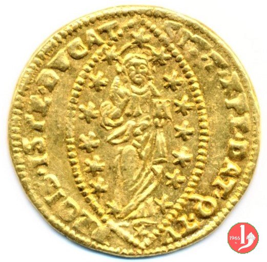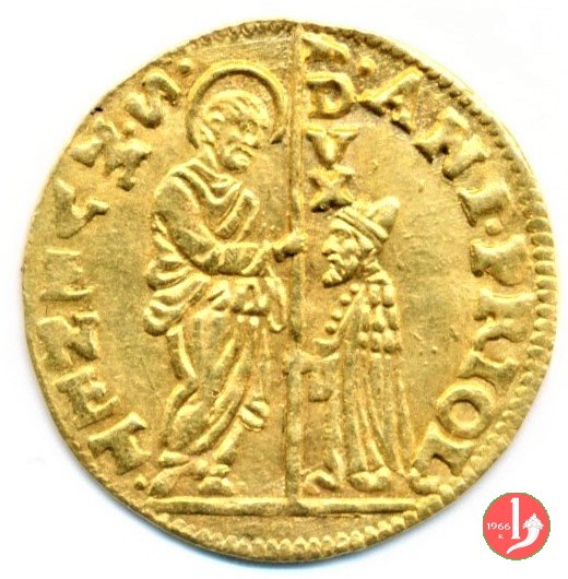 ANT PRIOL S M VENET, S. Marco stante e il doge inginocchiato reggono il vessillo, lungo l'asta DVX SIT T XPE DAT Q TV REGIS ISTE DVCAT, il Redentore in mandorla stellata