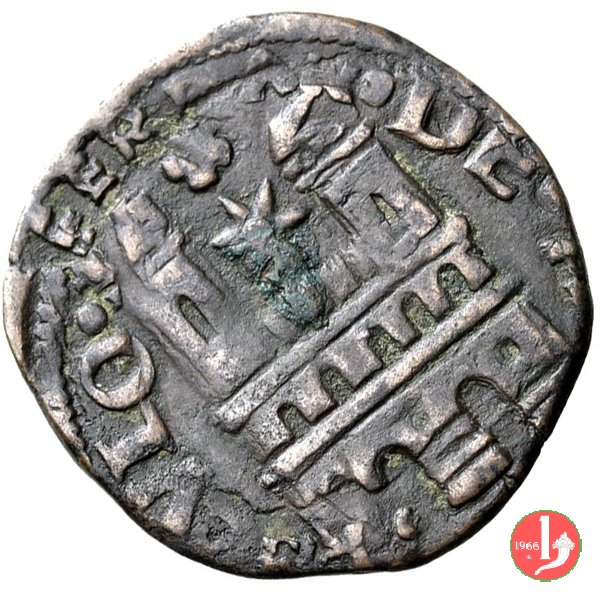 quattrino ribattuto su cavallo di Ferdinando I d'Aragona, della zecca di Napoli. | |
