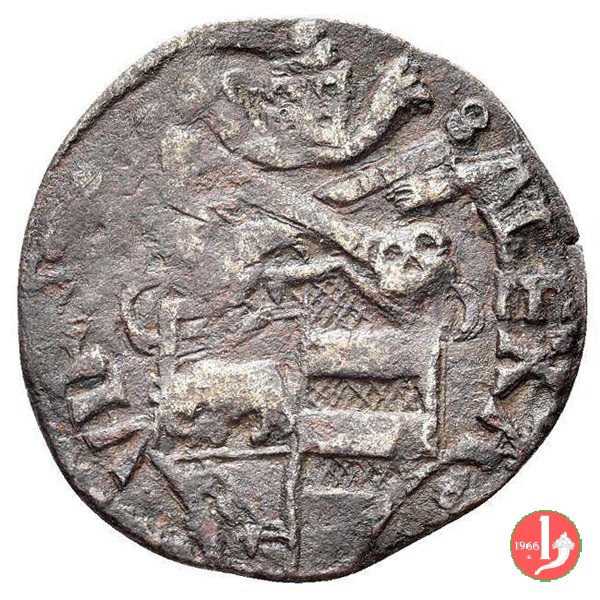 quattrino ribattuto su cavallo del papa Innocenzo VIII, della zecca de L' Aquila. |