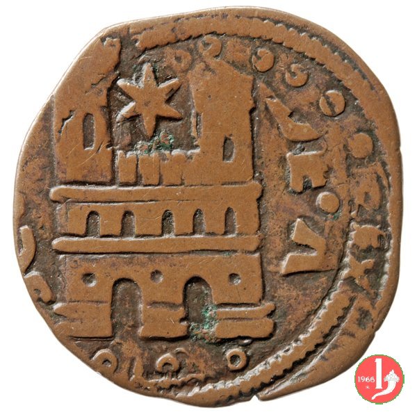 quattrino ribattuto su cavallo di Ferdinando I d'Aragona, della zecca de L' Aquila. | |