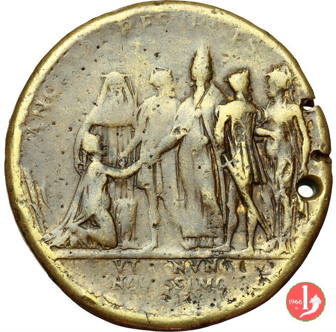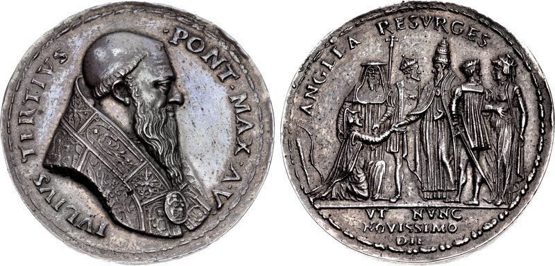 Medaglia originale coniata, emessa nel 1554, a ricordo della Restaurazione della Religione Cattolica in Inghilterra.