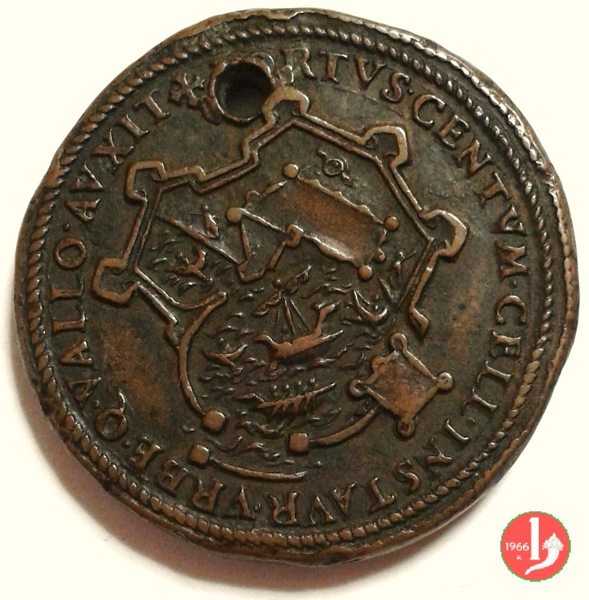 | Medaglia originale coniata, emessa nel 1561, per ricordare le fortificazioni fatte realizzare nel Porto di Civitavecchia. | |||||||