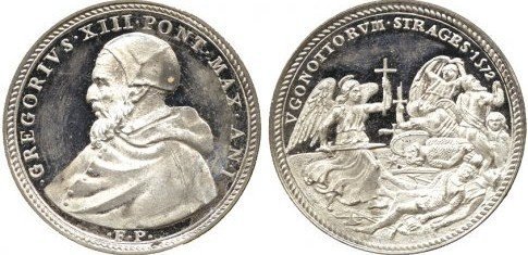 Medaglia coniata, copia nel XIX sec., ricorda la strage degli Ugonotti del 1572.