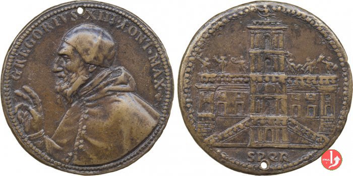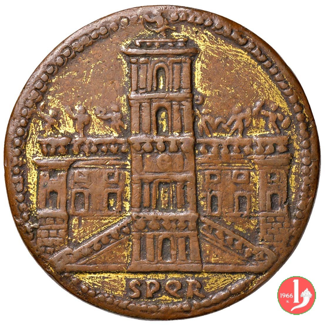 | Medaglia fusa, emessa nel 1579 circa, a ricordo dei lavori di trasformazione e ristrutturazione del Palazzo Senatorio del Campidoglio. | ||||||