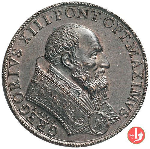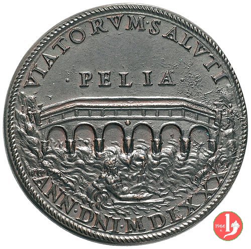 Medaglia riconio, eseguita, con i conii originale della Mo 776, tra la fine del XVI e l'inizio del XVII secolo - Hamerani e nel XIX secolo - Mazio, per ricordare la costruzione del Ponte Gregoriano sul fiume Paglia. I riconi ottocenteschi del Mazio sono distinguibili in quanto hanno patine molto scure. | |||||||
