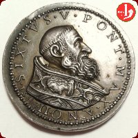 | Medaglia originale coniata, emessa nel 1586, per ricordare i provvedimenti adottati per la sicurezza nei territori dello Stato della Chiesa. | ||||||